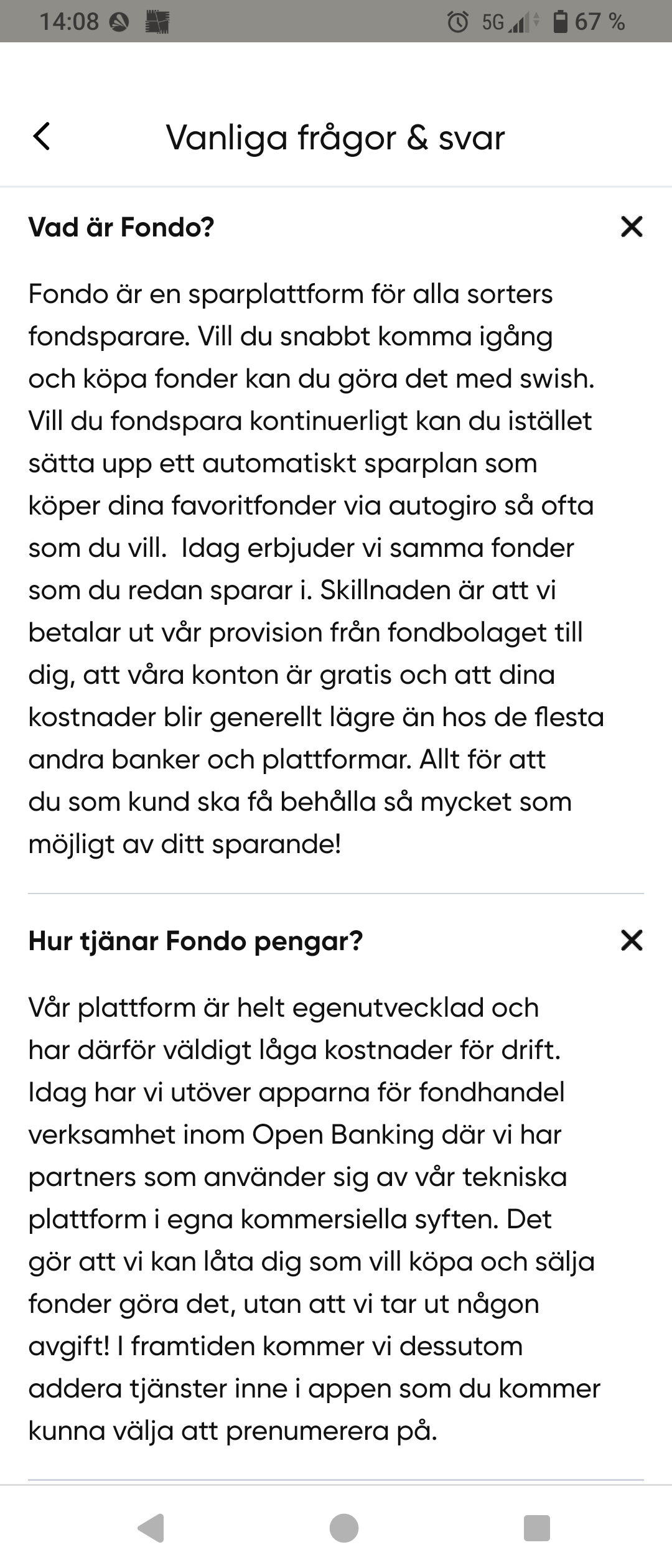 Jag ser inga nackdelar att ha pengarna hos Fondo om man inte är i behov av portföljbelåning. Rabatt på avgifterna får du tillbaka varje kvartal och de pengarna kan du använda direkt för att köpa fonder med. Fondo har enbart fonder och inga enskilda aktier att köpa.