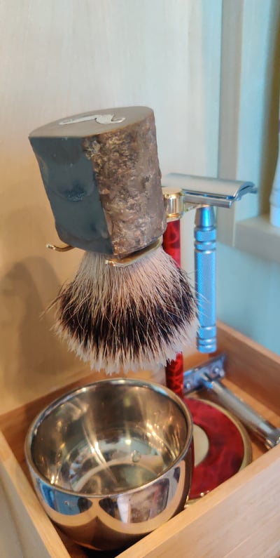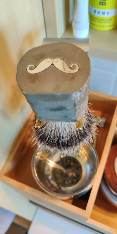 När jag önskar mig en silvertip rakborste gör hon en av en fossil vi hittat i fastigheten.