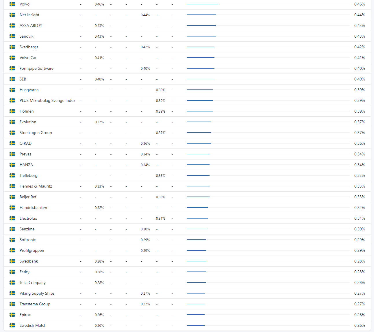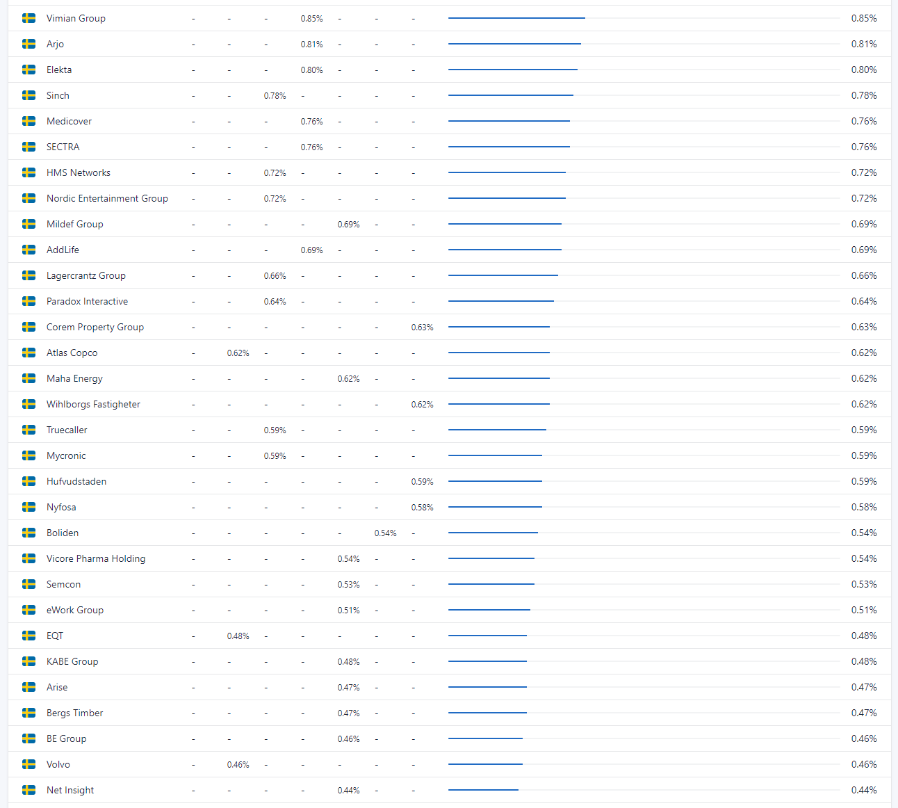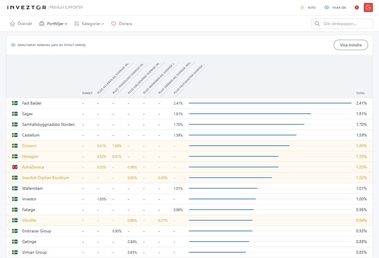 Ja precis… kanske inte så lite som 0.001%, utan det är bara de 30-40 största innehaven i respektive fond som tas med… så även om “Fast Balder” är med i AllaBolag så är det inte tillräckligt stort innehav (i den fonden) för att komma med i listan.