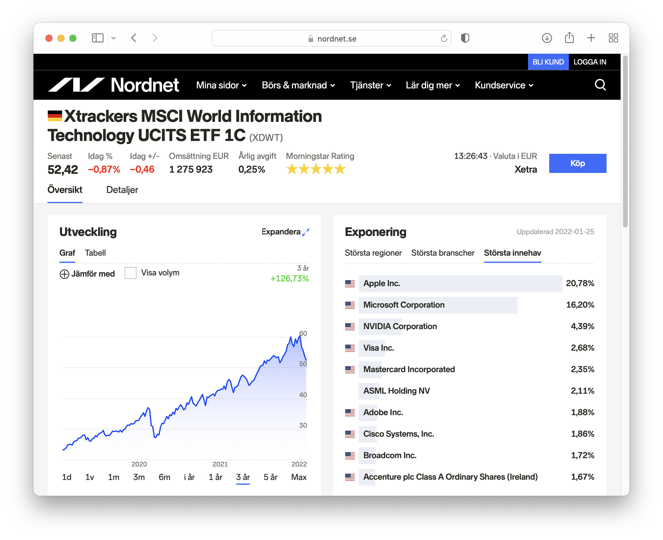 Håller med om allt, vill bara inflika att jag tycker Nordnet är duktiga på att visa ETF:ers innehav.
