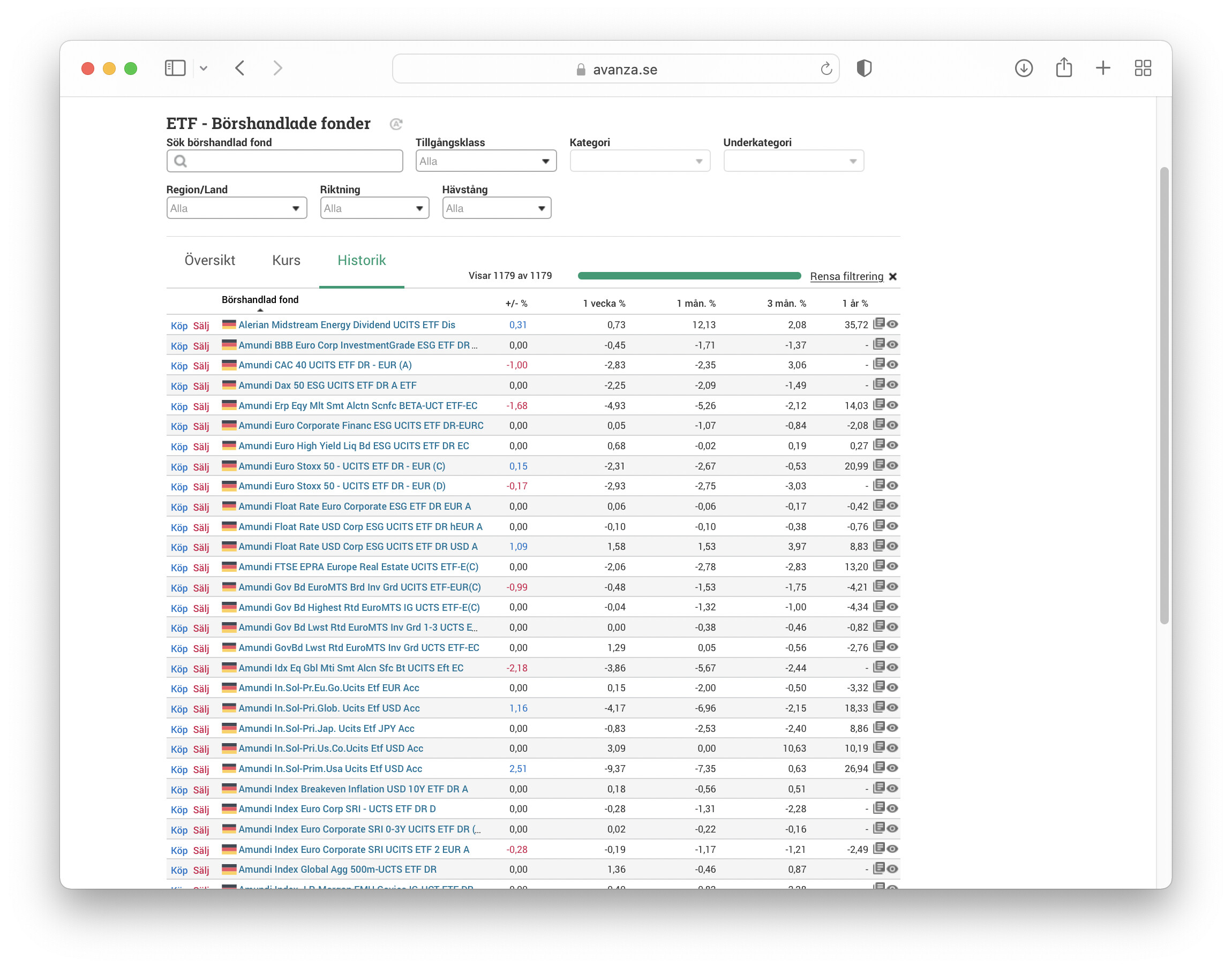 Absolut, Avanzas ETF-information är helt värdelöst uselt. T.ex., hur svårt hade det varit att koda så att man kan klicka på kolumnrubrikerna för att sortera på avkastning senaste vecka/mån/år?