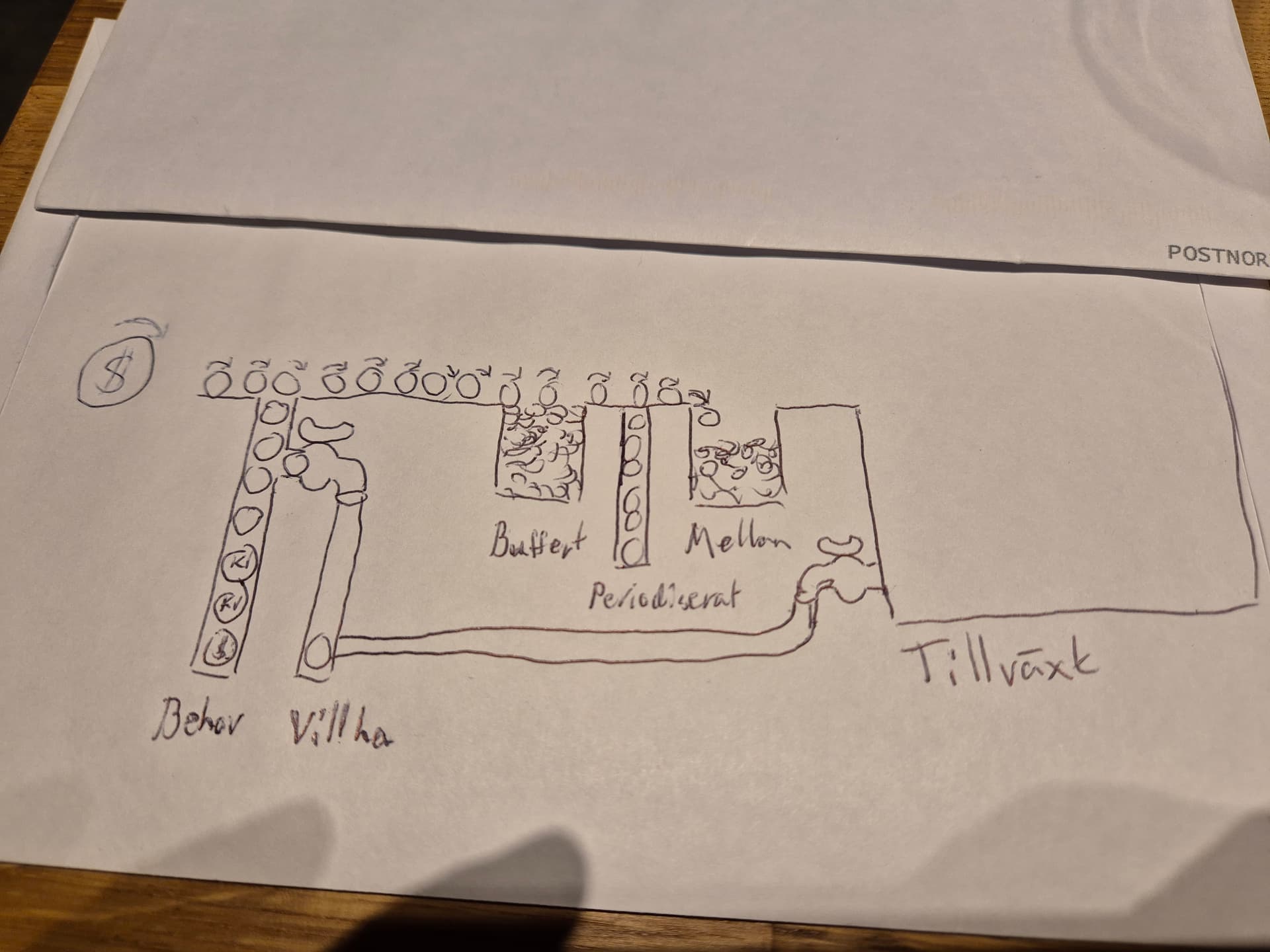 I min värld har buffert och mellanhink till syftet att skydda tillväxthinken från tömning och kan offras under långvariga krascher för att bevara tillväxthinken. Boendet är en tillgång men inget man rimligtvis säljer av (om man inte planerat för det) för att bekosta sina utgifter, därför tycker jag att boendet inte har där att göra utan bör flyttas till tillväxthinken (då det oftast blir ett arv) eller tas bort ur ekvationen.