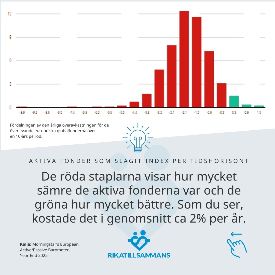 ▸ Över en 10 års period är 8 av 10 aktiva fonder sämre än jämförbar passiv indexfond