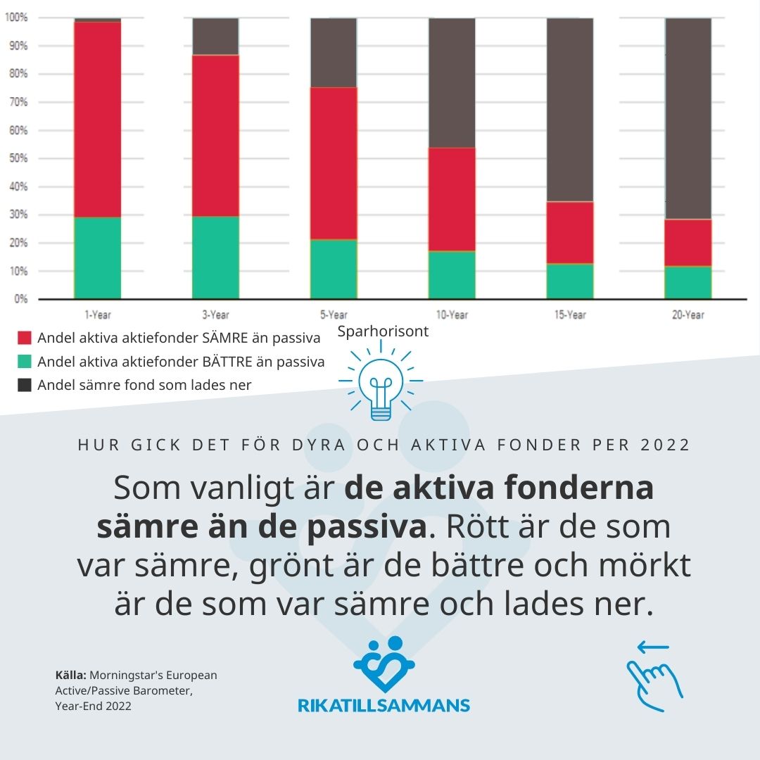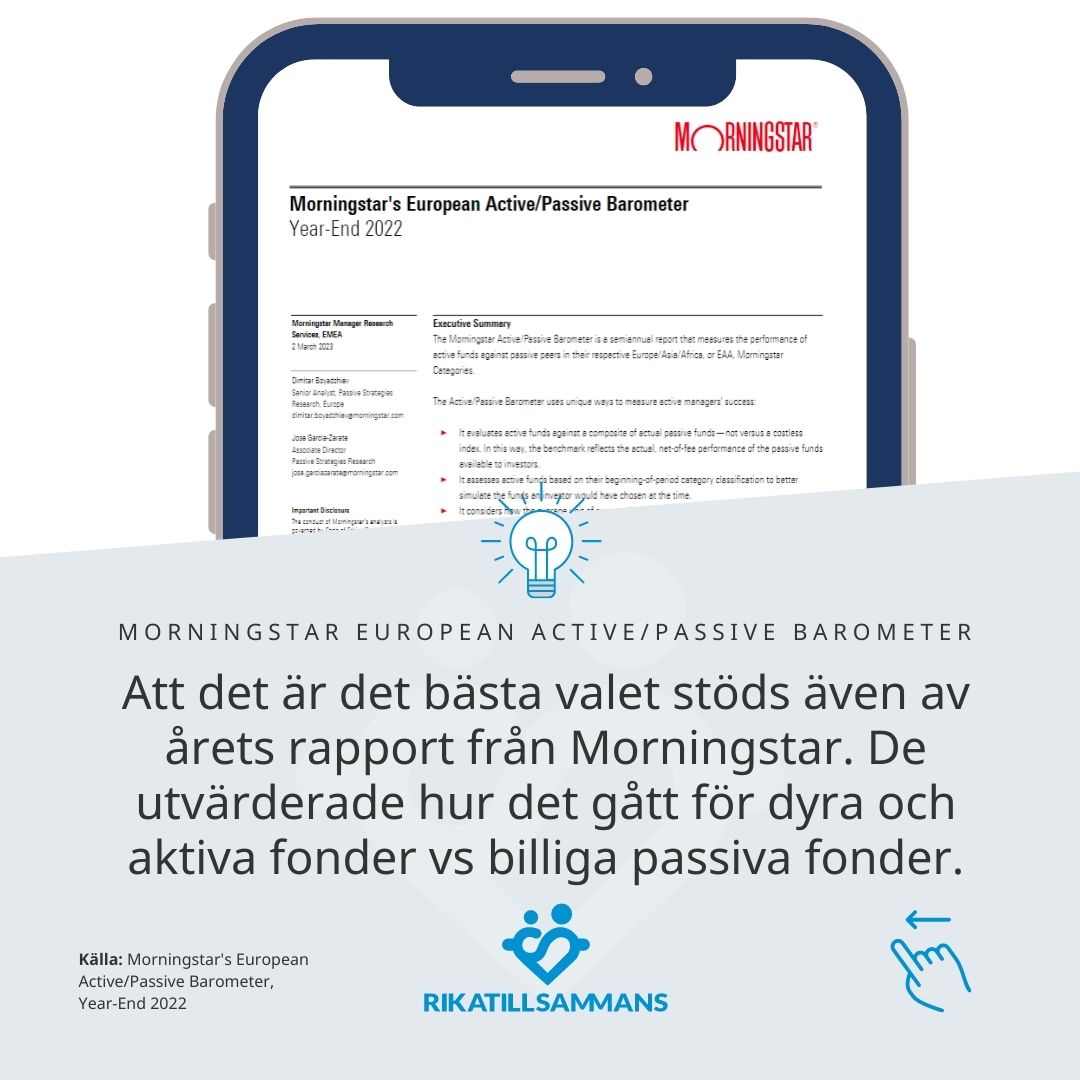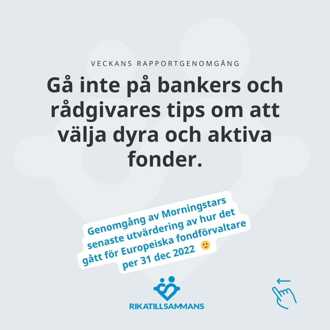 Dagens inlägg på Instagram utifrån rapporten: “Morningstar’s European Active/Passive Barometer”. Som vanligt är det lite förenklat för att passa i sociala medier. I första kommentaren kommer de lite nördiga delarna för dig i forumet. ![]()