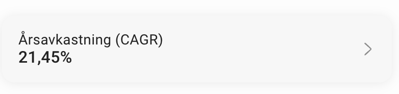 Nordnet släppte nyss en funktion i appen som visar genomsnittlig årlig tillväxttakt (CAGR). Mätetalet är visserligen inget nytt under solen, men det var kul att få det presenterat direkt i appen. Jag ligger på 10,02 % sedan 2016. Hur har det gått för er?