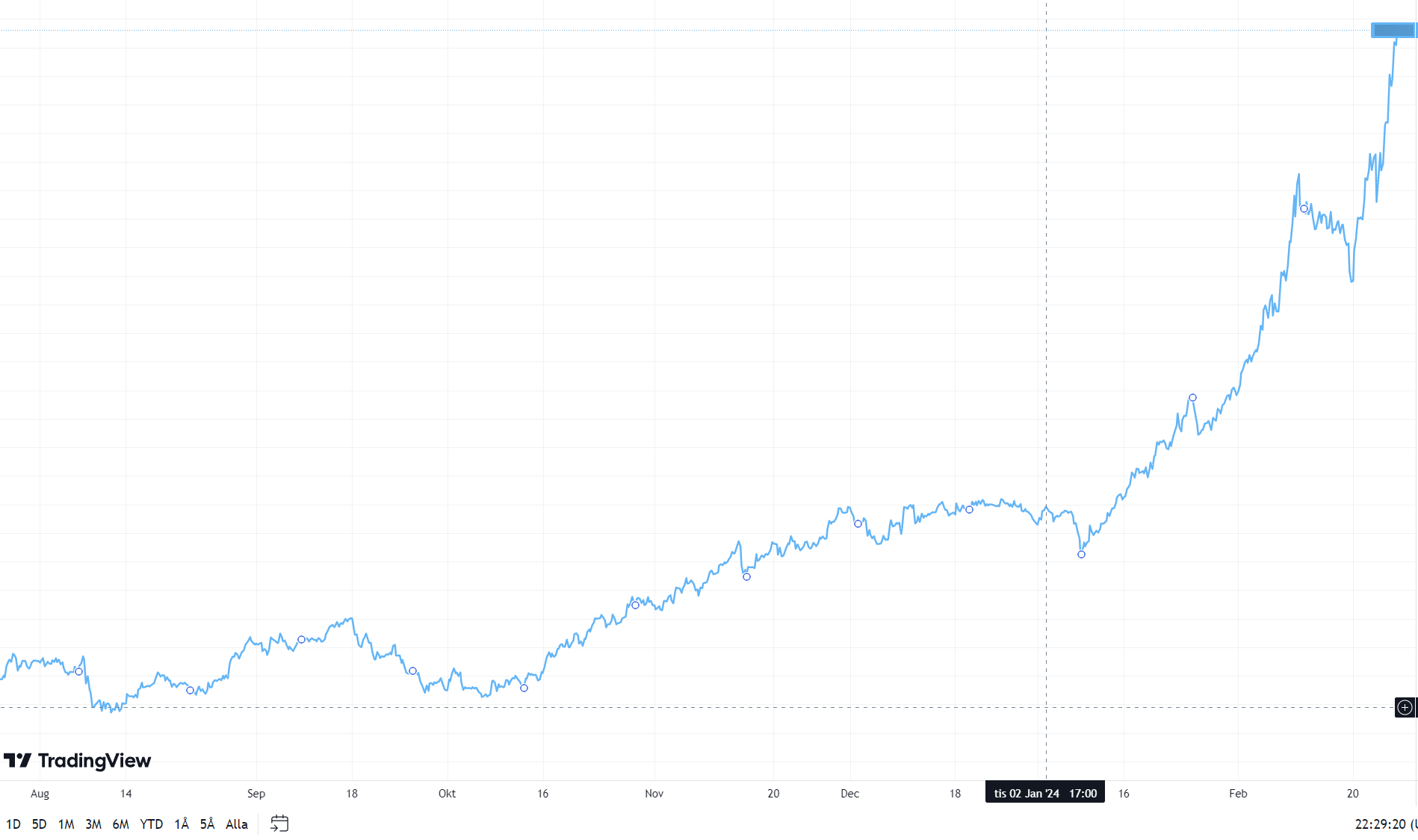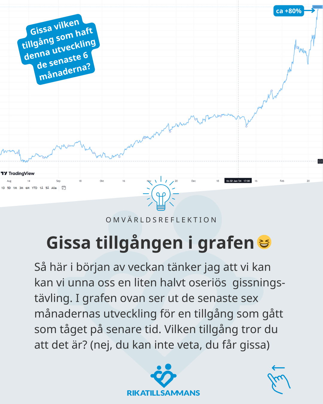 Måndag kväll, då är det OK att vara lite oseriös… Således, gissa tillgången, ca +80-ish % de senaste 6 månaderna. Facit kommer imorgon! ![]()