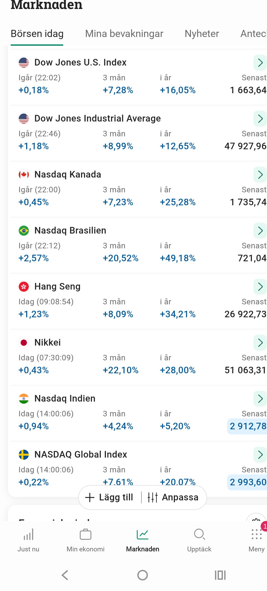 Bra fråga, jag kollar bara på procenten som står på avanza. Där finns tex Nasdaq global index och det står bara procent