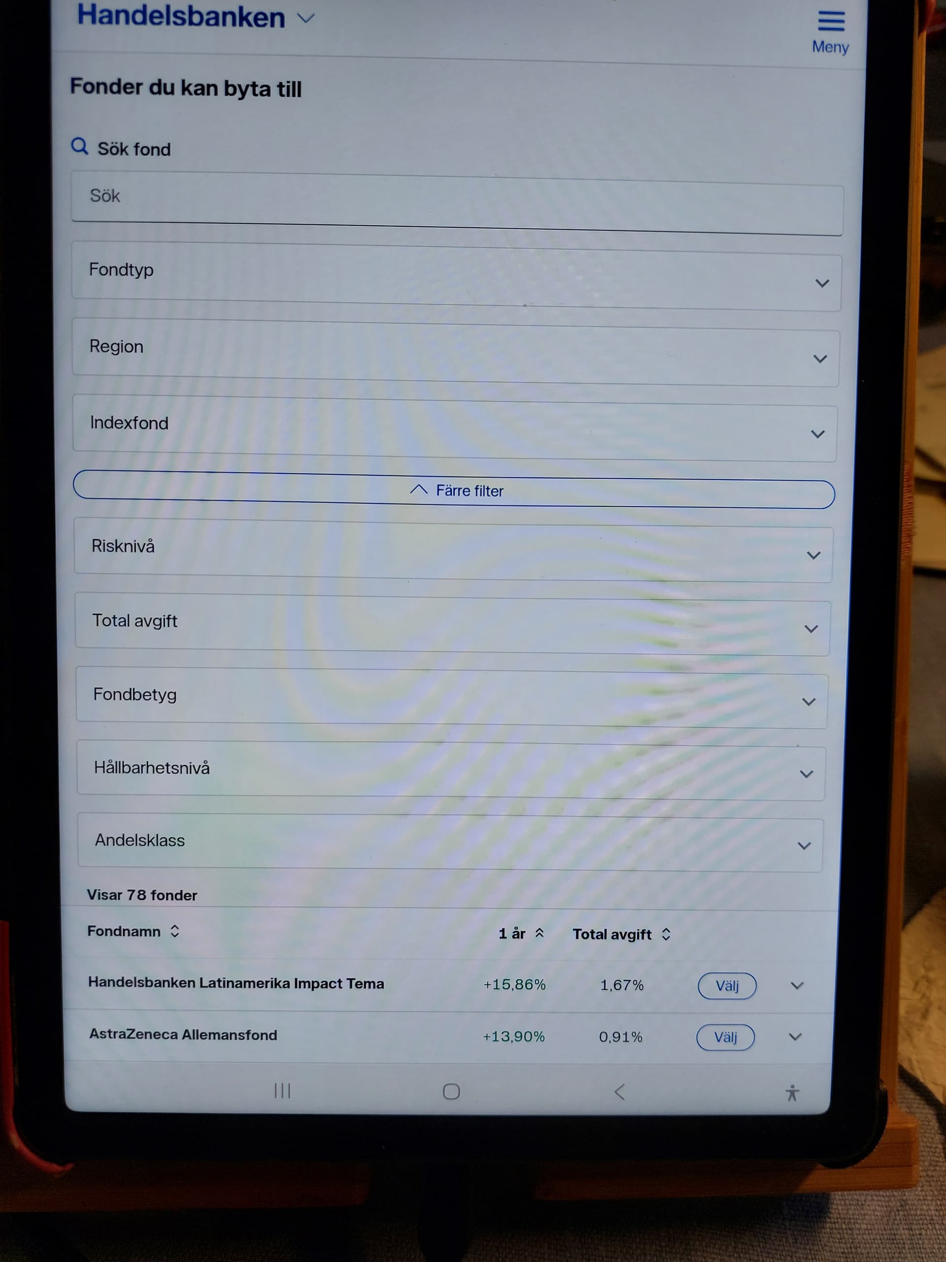 När jag klickar på “byt” kommmer bara Handelsbankens fonder upp.