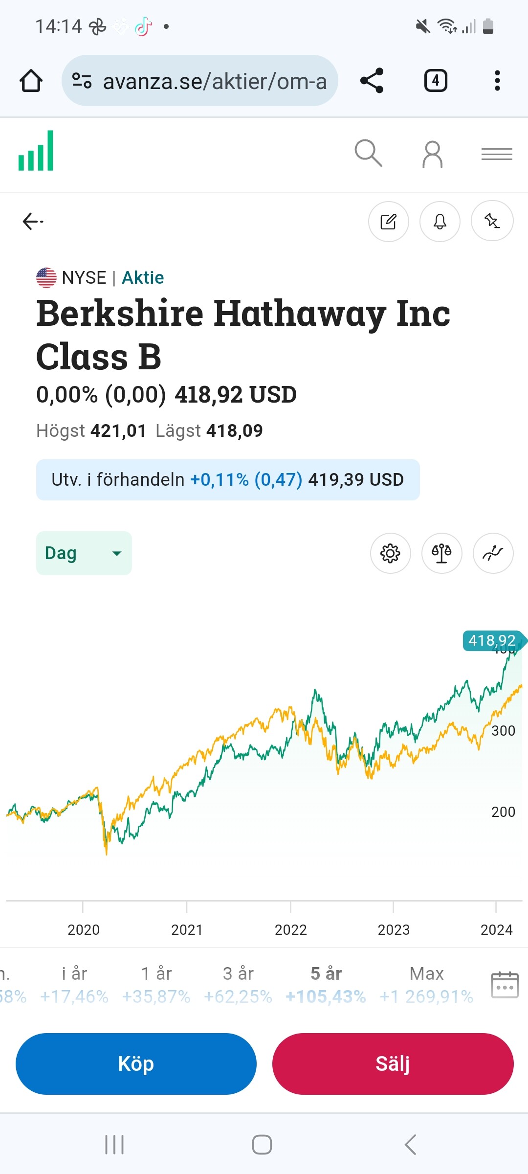 Berkshire Hathaway har gått back jämfört med vilket index ni nu jämför med?