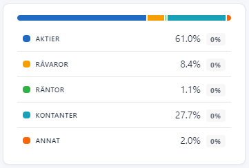 Summa summarum så handlar det om förutsättningar och vad man vill uppnå med guldet. Jag personligen hamnar i att ha någonstans mellan 5 - 10 % i guld av totalen (förutom RT-/PP-portföljen på 25 %, men det är en av anledningarna till att jag har svårt att argumentera för den på någon högre nivå).