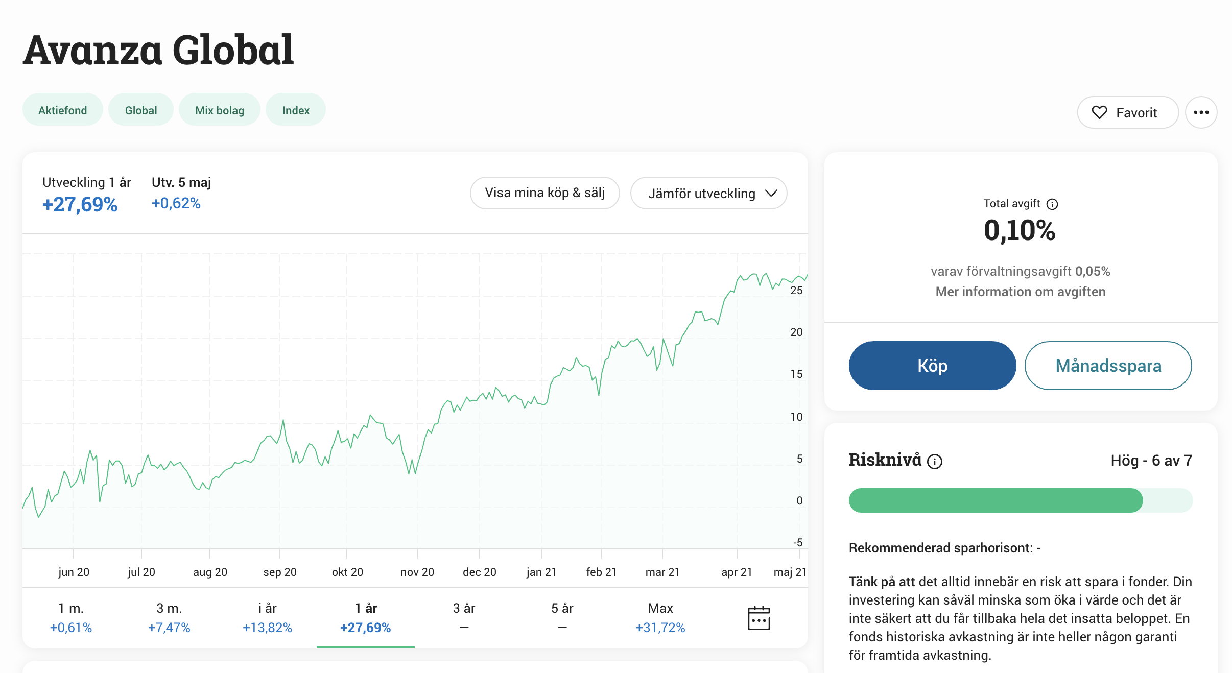 Är det bara jag eller har Avanza Global gått från billig till snorbillig? Har för mig att den låg högre än 0,10%