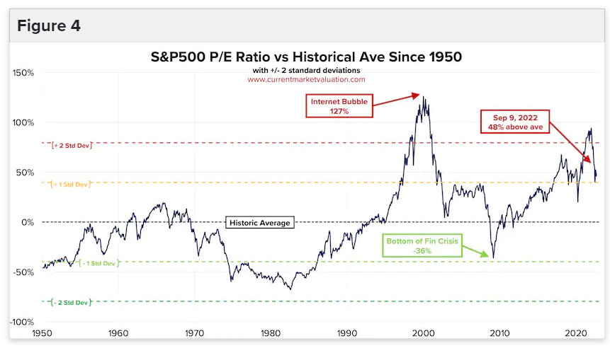 Artikeln pratar om den amerikanska börsen och dess värdering i dagsläget (så det behöver inte nödvändigtvis stämma för andra marknader), som fortfarande ligger på en nivå som är en bra bit över historiskt medel och ligger ovanför en standardavvikelse.