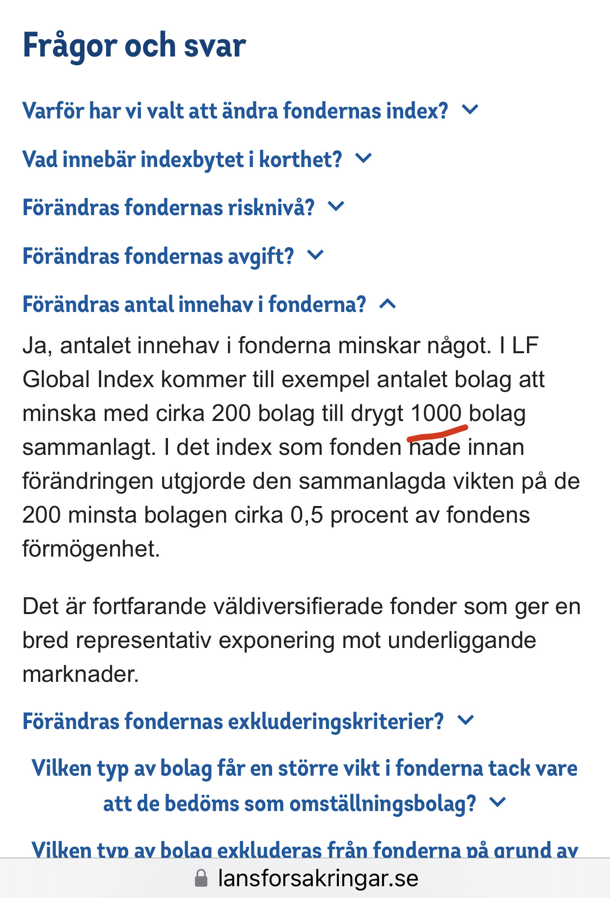 Det råkar i alla fall sammanfalla med att de borttagna bolagen är små om de endast utgör en halv procent av fonden, enligt ovan.