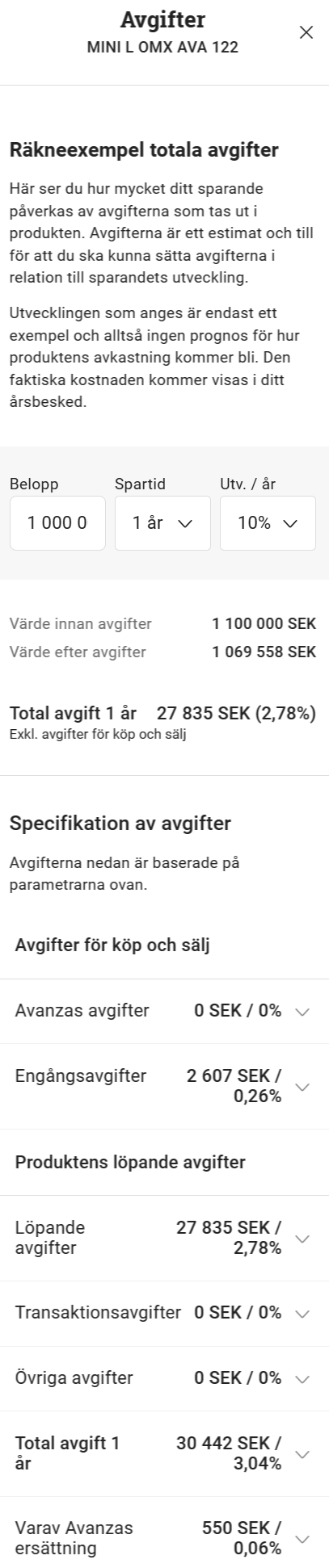 Kostnader för MINI L OMX AVA 122, OMX med en hävstång om 1.92 just nu om förutsatt att: