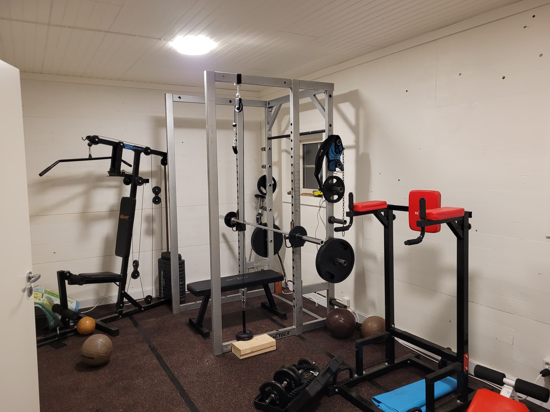 Köpt allt förutom viktmattorna på blocket eller marketplace. Gissar att det har kostat kring 15 000 allt som allt, den kostnaden äter snart ett gymkort upp efter något år. Mitt tips är att skippa allt vad maskiner heter för att spara plats. Samtidigt så är jag lite mer bias mot fria vikter.