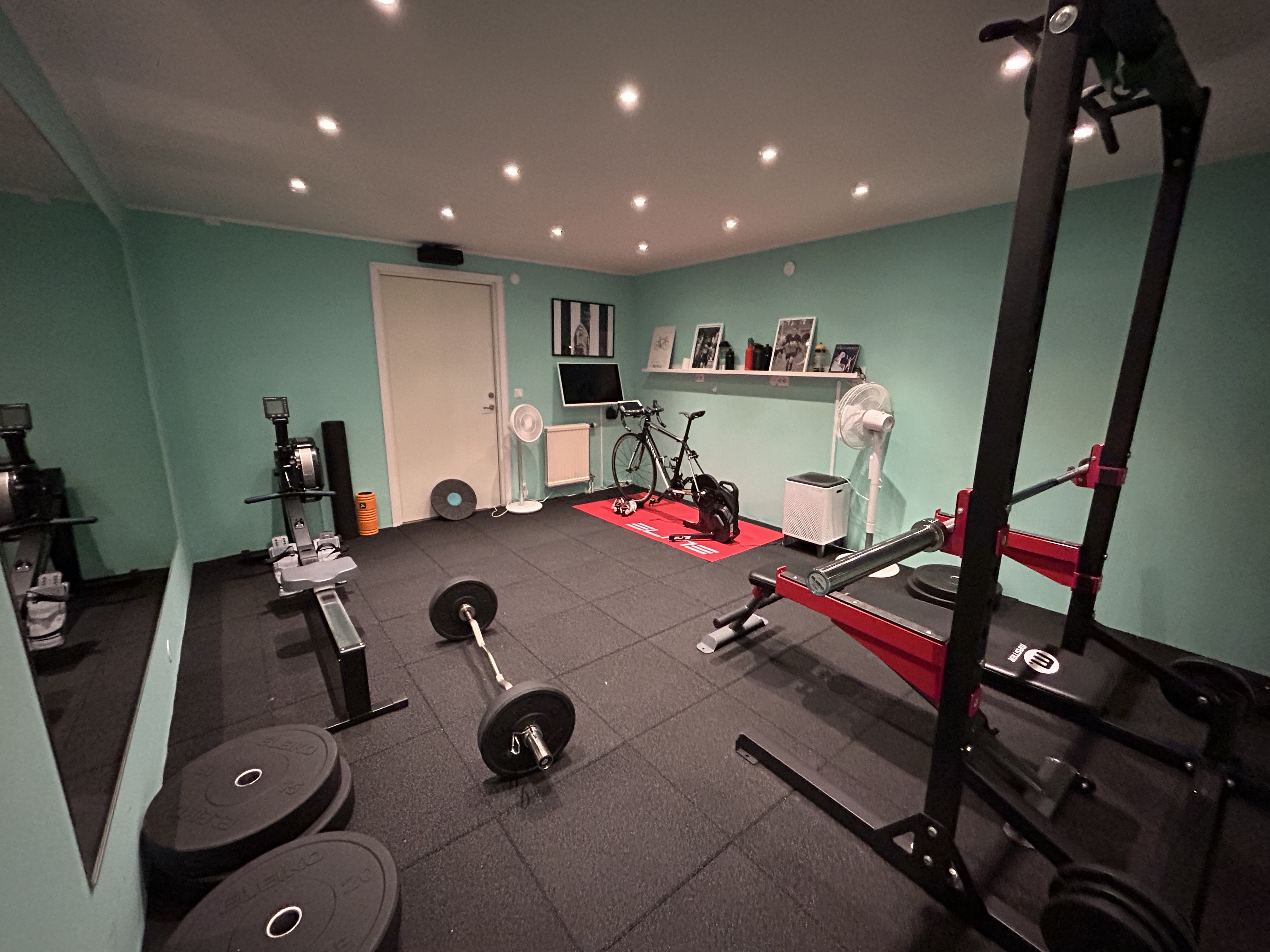 Jag har satt upp hemmagym i källaren i ett oisolerat betongrum. Löpband (Master T25) plus bänk och skivstång. Lite hantlar och kettlebelts. Gymmatta. Kmr sjukt långt på det!