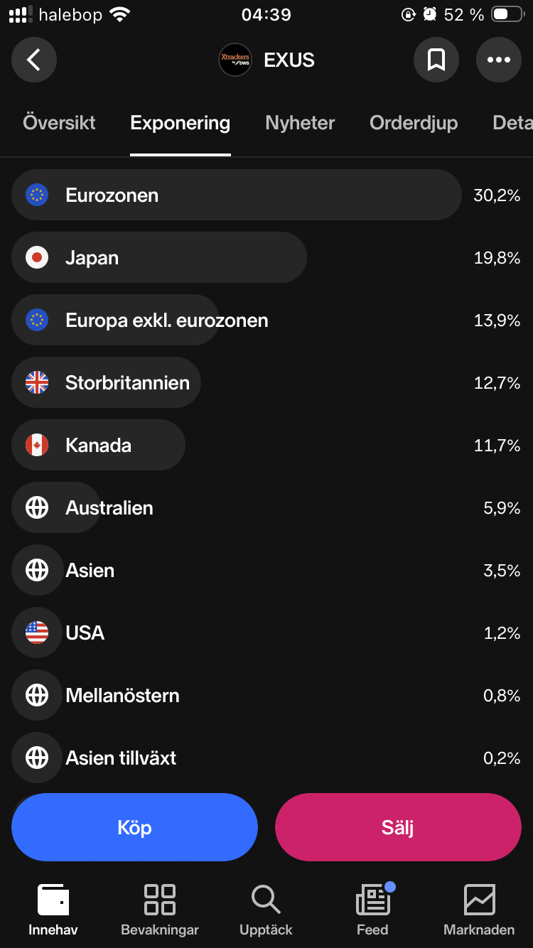 Om det är din övertygelse så är denna ETF troligtvis det bästa alternativet. Den följer MSCI World ex USA (alltså globalfond utan USA) och handlas i SEK.