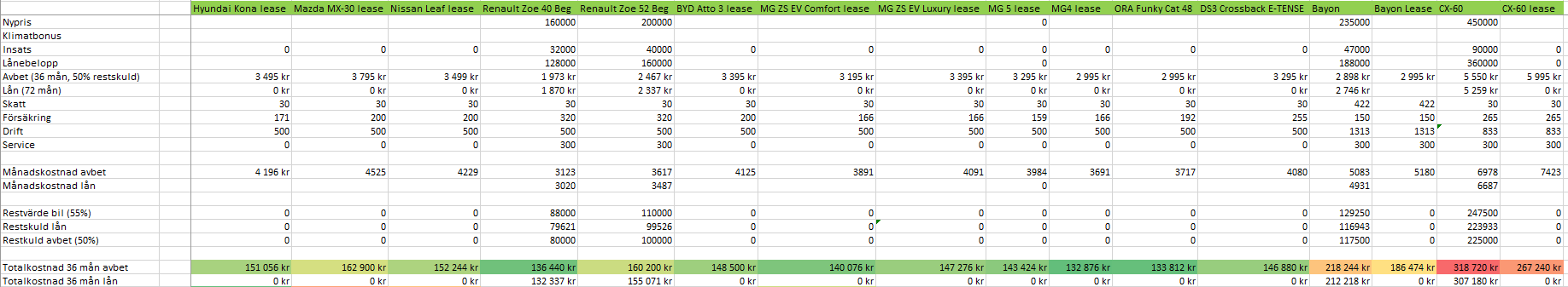 Jag är absolut ingen expert på TCO men jag gör en hel del jämförelser inför mina bilbyten som sker oftare än vad som egentligen är hälsosamt