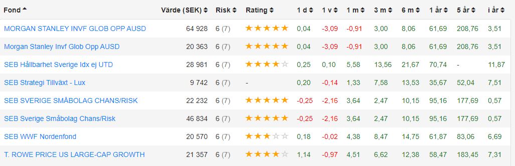 Det betalas fortfarande in pengar till dessa i form av löneväxling: SEB Sverigefond Småbolag C/R T. Rowe Price US Lg Cap Gr Eq A USD