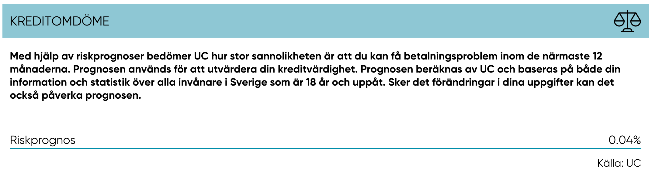 Den kommer du aldrig få reda på. En stor del av UCs affär är deras kreditmallar där man outsourcar sina kreditbeslut till dom. Inte ens som betalande kund fick man några mer detaljerade svar kring hur dom kom fram till sina betyg utan det var mer take it or leave it som gällde.