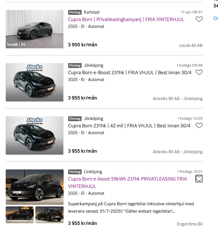 Håller med men däcken ingår i leasingavgiften i någon form av kampanj.