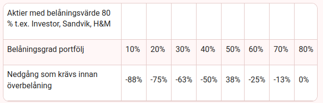 Observera att just den tabellen utgår från att du får belåna upp till 80% av värdepappernas värde.
