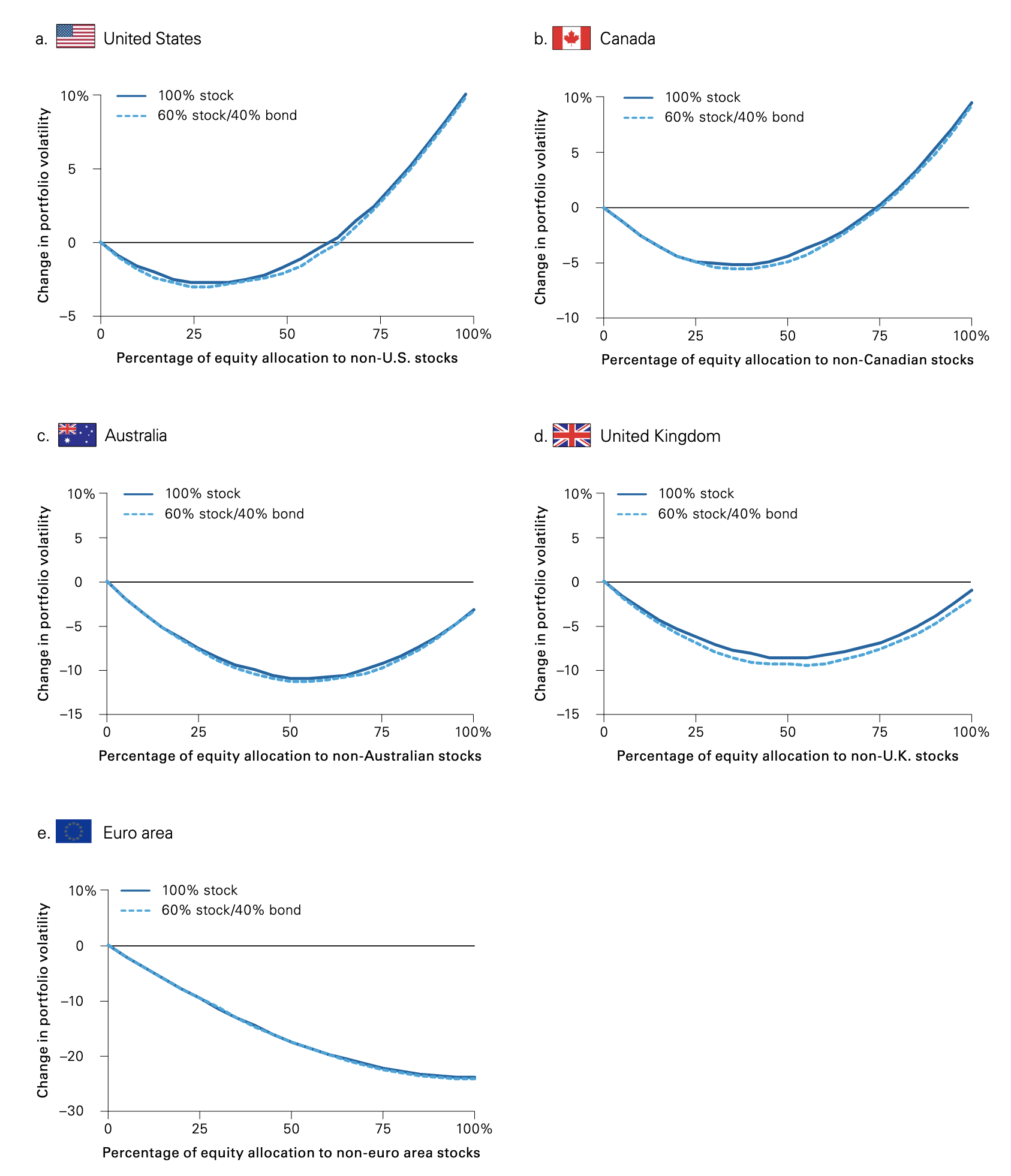 - Siamond utgår från vad som hade hänt om man varit en italiensk investerare, eller en svensk investerare, eller en kanadensisk investerare, och så vidare. Med data för dessa länder. Och tittar sedan på vad som hade fungerat för dessa. Han konstaterar att både amerikanare och svenskar hade historiskt haft nytta av att köra 100 % i hemmamarknaden, men att de flesta länder hade haft nytta av mer globala aktier, och att den bästa taktiken när man ser på alla länder sammantaget verkar ligga på runt 20-40 % i hemmamarknaden.