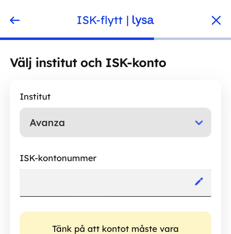 Har nu investerat i ett ISK på Avanza enligt RT barnportfölj i ca 3 år och vill nu flytta det till Lysa då jag känner att mitt intresse och kompetens inte är stor nog för att det ska vara optimalt att ha kvar sparandet på Avanza. Så min fråga är hur jag ska gå till väga för att lättast flytta över pengarna. Ska jag sälja av allt o sen ta ut det från Avanza, sätta in på min “vanliga” bank (SEB) o sen in på Lysa eller finns det något smidigare sätt? (Har läst lite på forumet om ISK-flytt men förstår inte riktigt vad det innebär). Min plan är att flytta över de ca 30k jag har på Avanza och sedan månadspara 500 (relativt mycket av min månadsinkomst som består av CSN på 1250).