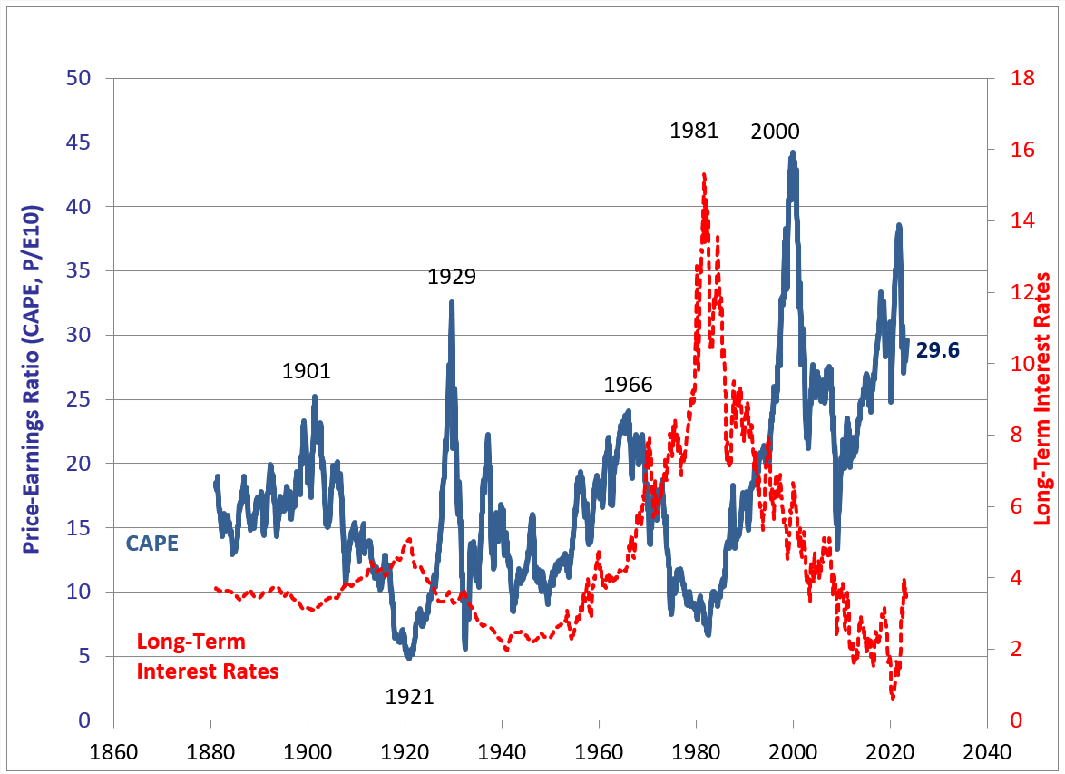 Historical valuations.Robert Shiller has CAPE ratio data going back to 1871: