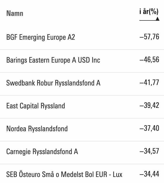 Eftersom det finns flera fonder med en liten andel Ryssland som fortfarande handlas så verkar det ju fungera ändå. Problemet är väl med fonder som har en väldigt stor andel, som dessa (sämsta PPM-fonderna i år).