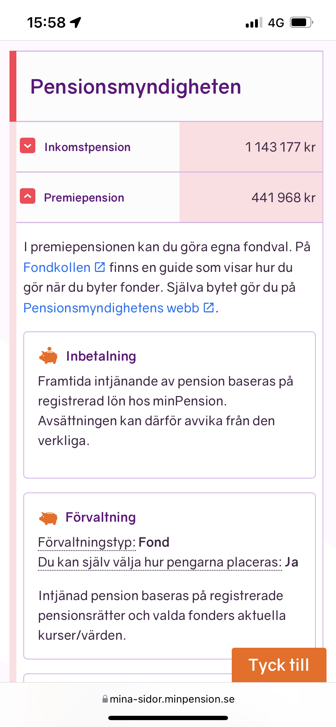 Jag är idag 36år gammal, fyller 37 iår och har en premiepension på 426.000kr.