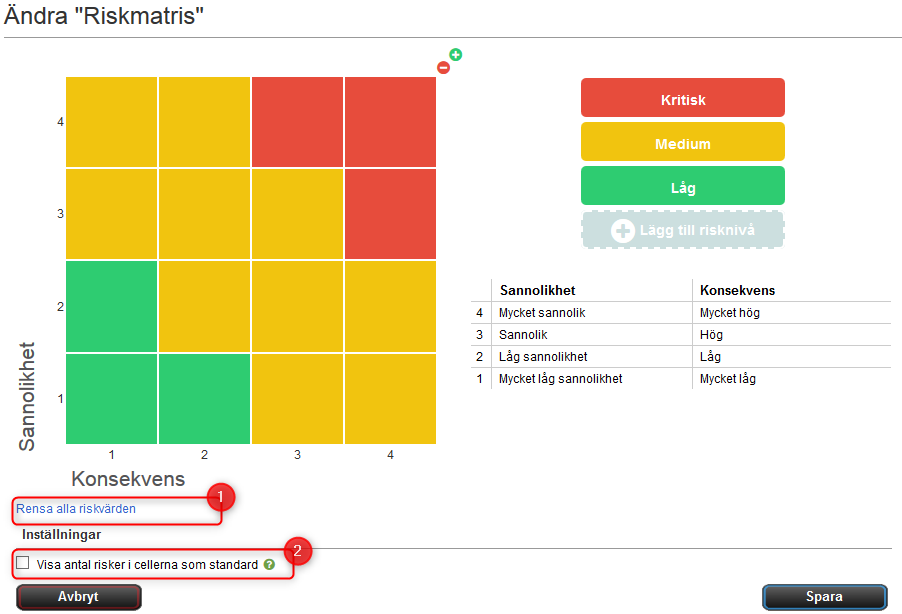 När det gäller risker kan man om man vill vara lite matte-grafisk också använda riskmatriser
