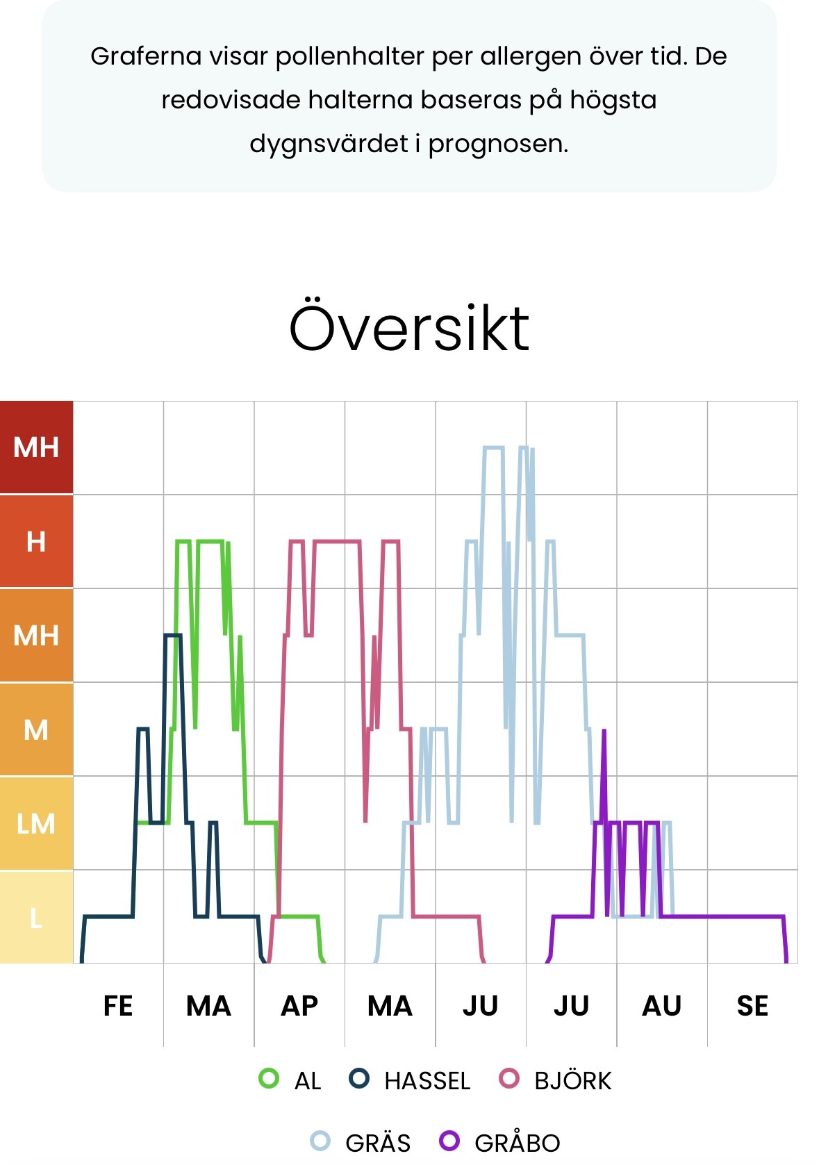 För oss med pollenallergi är förklaringen ganska tydlig när man ser pollenkurvan.