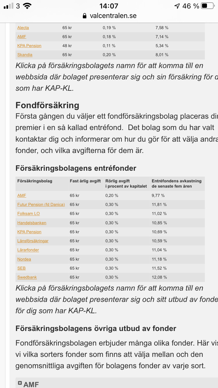 Med kap-kl är valfriheten ganska begränsad, kan inte flytta till tex Avanza så då kändes LF helt ok men kanske jag ska kika på valcentralen ändå vilka andra möjligheter som finns
