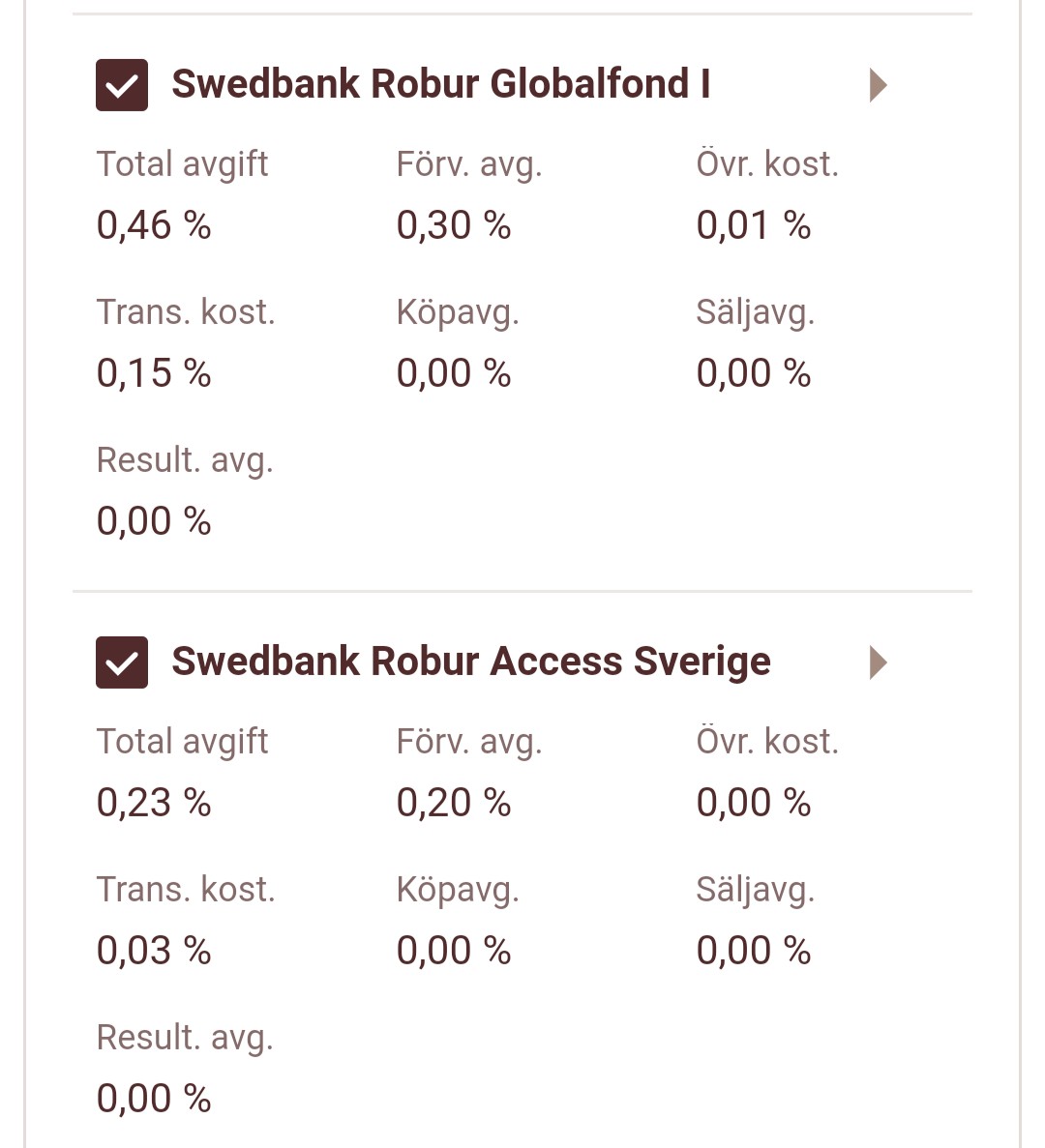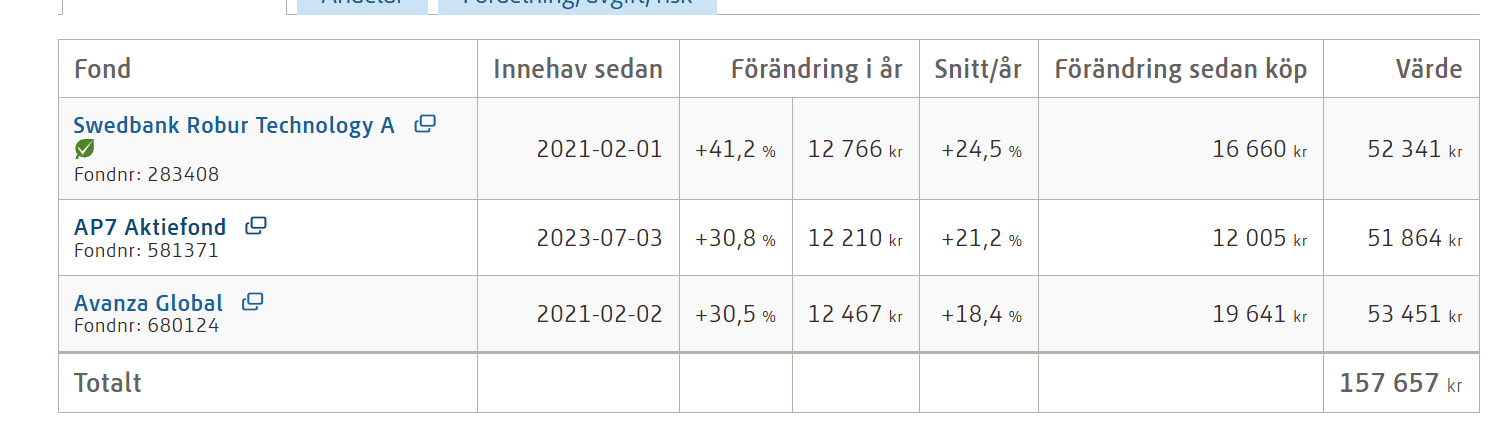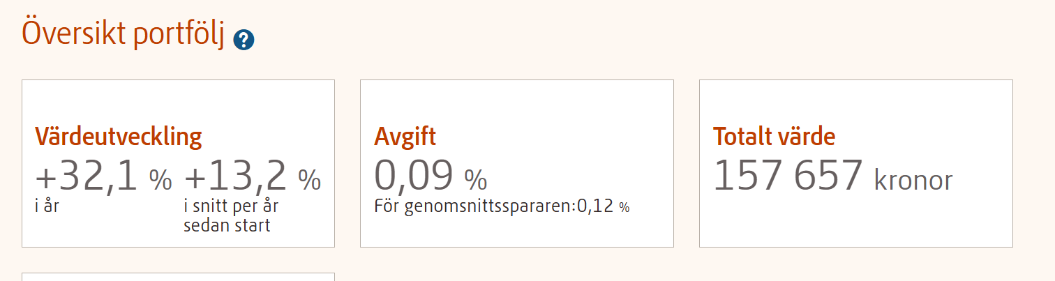 Har dock AMF på två av dem, och där är det deras aktivt förvaltade globala aktiefond. Finns ingen passiv. Kan flytta dem nu, funderar på vart och till vad.