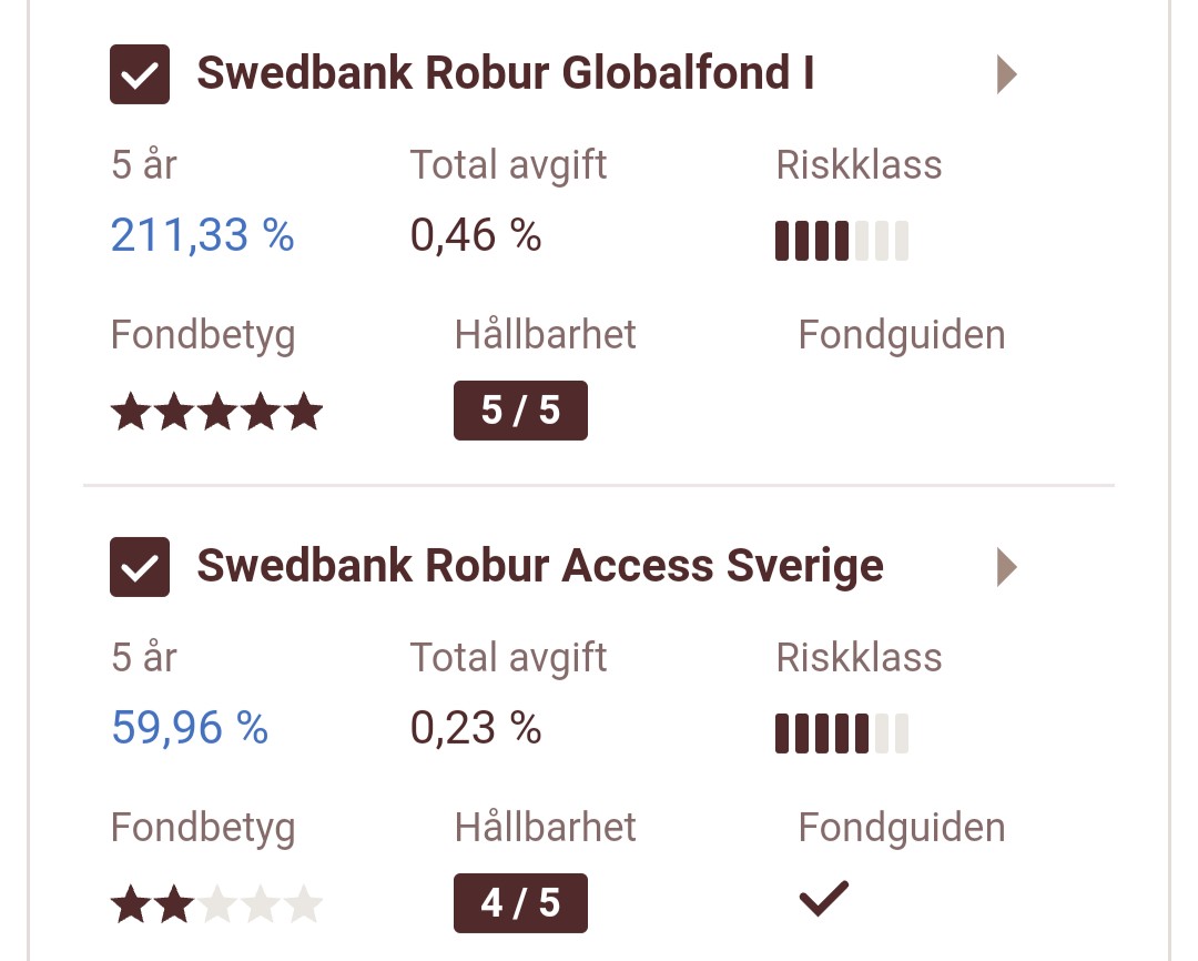 Har 7 olika fondförsäkringar och totalt 9 olika fonder då jag inte kan välja samma överallt.