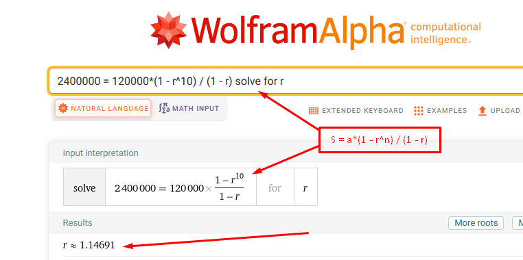 Enligt det du skriver kommer din slutgiltiga summa vara: S = 2 400 000