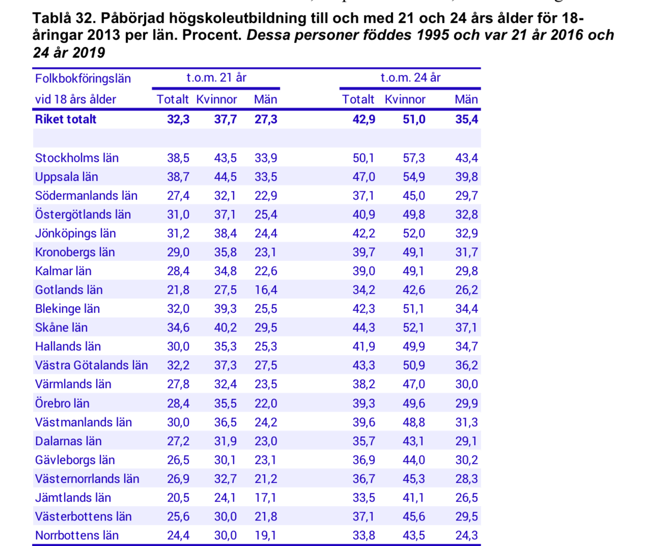 Skillnaden mellan länen har samband med flera bakomliggande faktorer. Den sociala sammansättningen av befolkningen i länen är en viktig faktor, eftersom benägenheten att påbörja högskolestudier har ett samband med social bakgrund. Tillgången till högskoleutbildning och situationen på arbetsmarknaden är andra faktorer som påverkar andelen som går vidare till en högskoleutbildning.