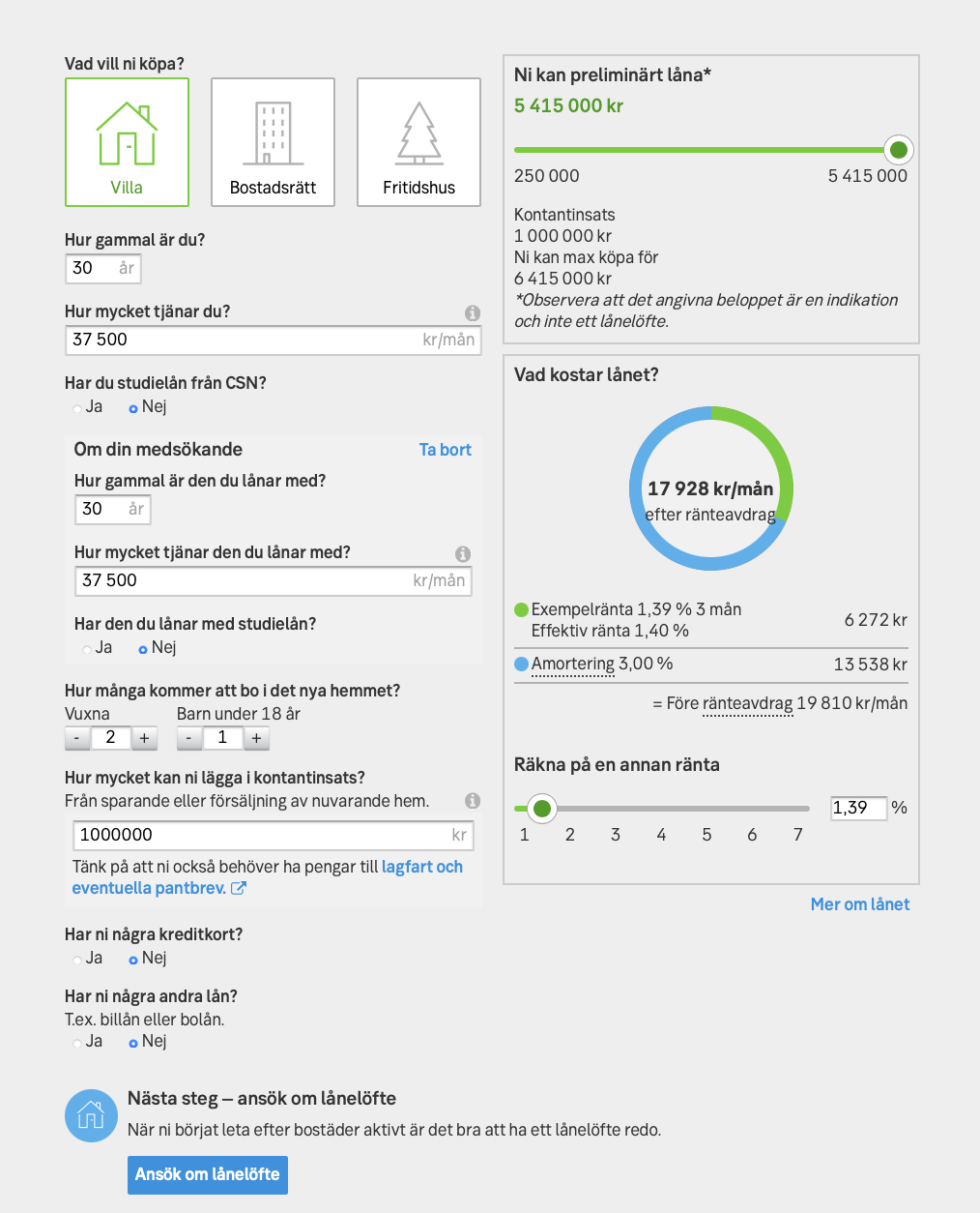 Jag och min fru får tillsammans ut 75k brutto i månaden och vi får max låna 4mkr från banken (Nordea).