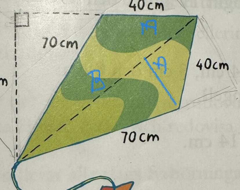 Man ska räkna ut drakens area med bara A = b * h/2