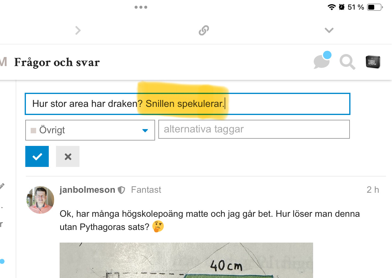 Oftast är dessa uppgifter enklare än vad man tror. Lätt att börja räkna Pythagoras/ sin eller cosinusatsen. Men vi får inte glömma att det är för årskurs 6