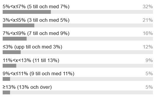 Det lägsta är 0-3%, sedan ökar det med 2% per alternativ, upp till >13% per år.