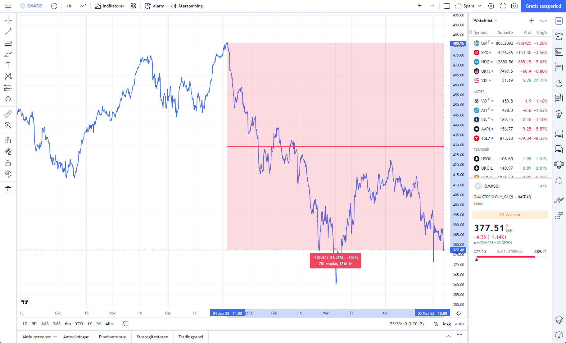 Vad är det enklaste sättet att hålla koll på hur mycket börsen rasat från toppen?