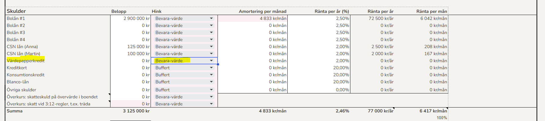 I dagsläget investerar vi ca: 15KSEK per månad i tillväxthinken, amorterar såklart ingenting.