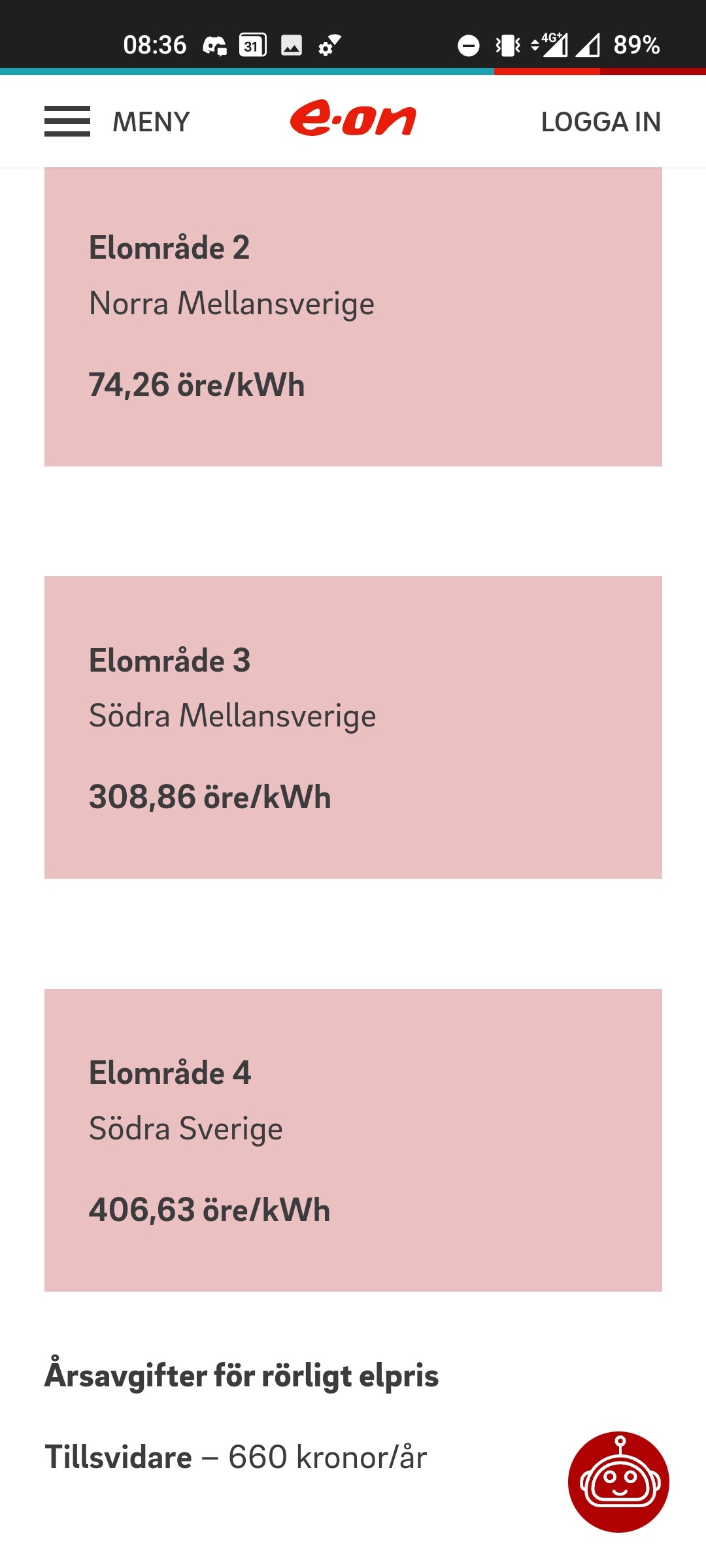 Eon hade alltså 406 öre/kwh (med moms)i augusti: