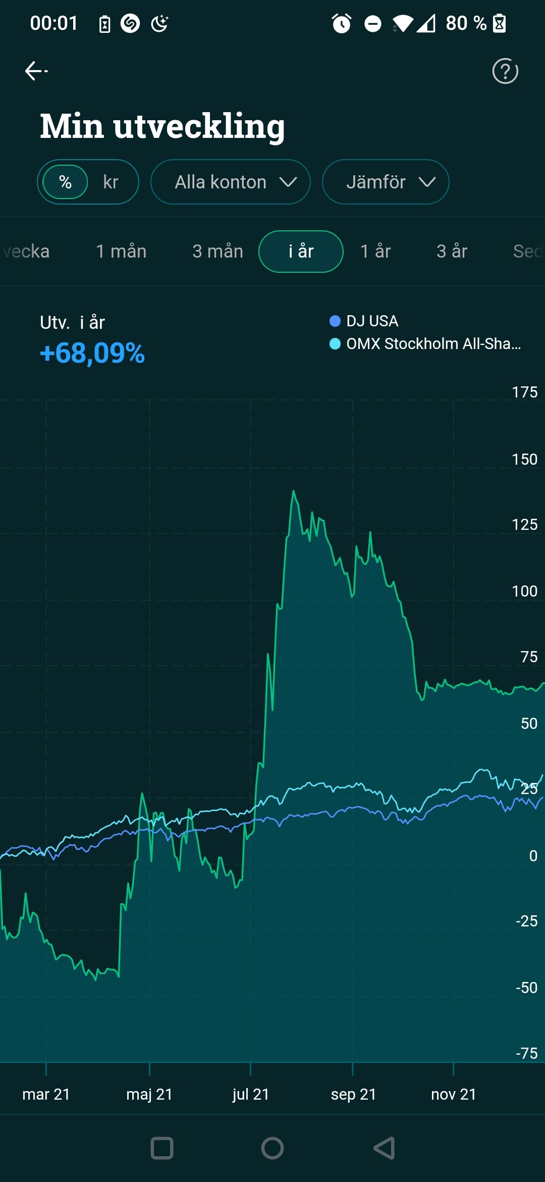 Okej, så det är alltså utvecklingen i kr jag går efter om jag vill veta resultatet för året som helhet? Även om jag t.ex har realiserat vinsten på en aktie?