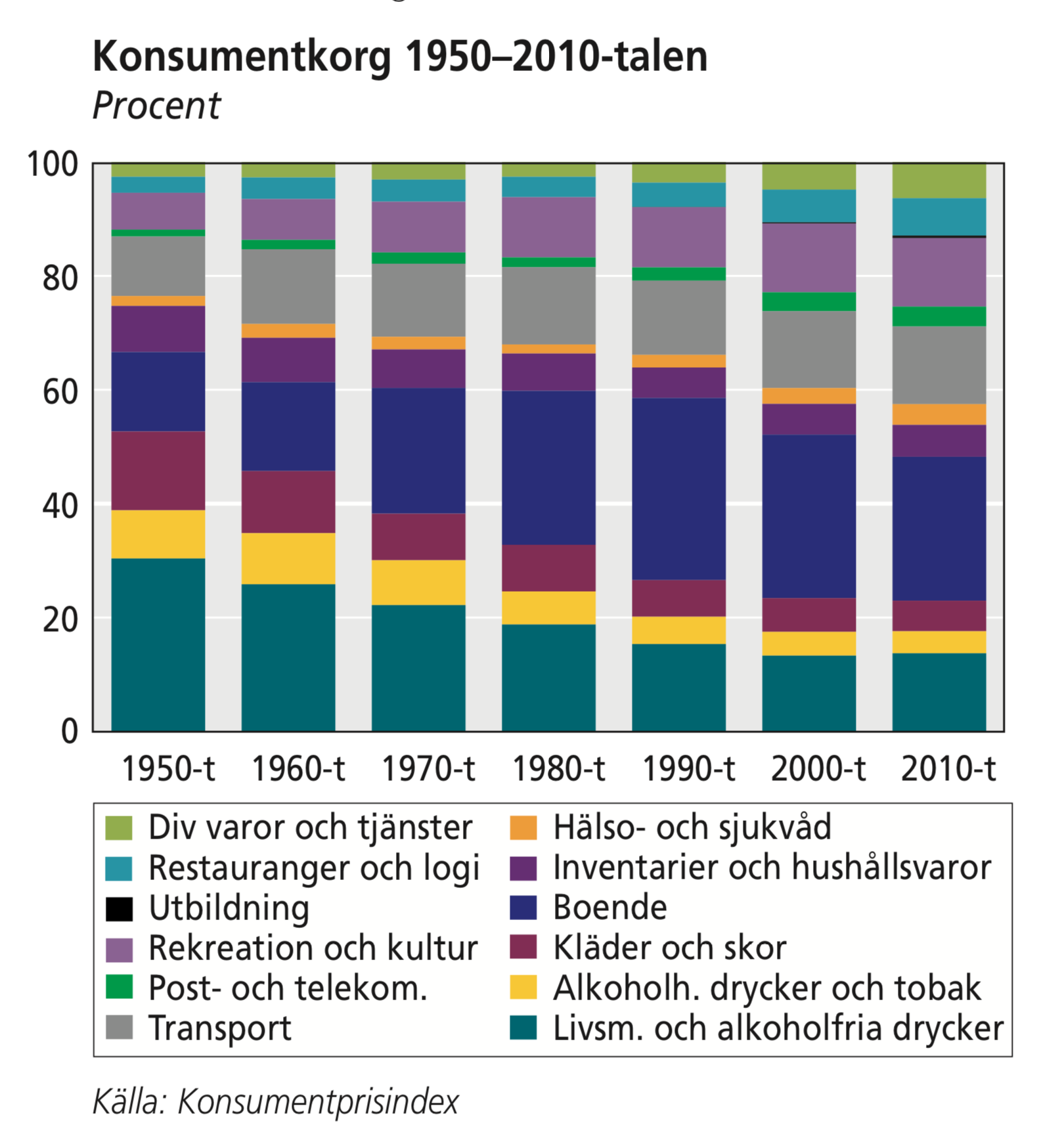 Jo men man får ju ta det hur det stora perspektivet också. Sen 1950 har ändå våra kostnader för basala behov sjunkit dramatiskt som medfört att vi har mer pengar att röra oss med.