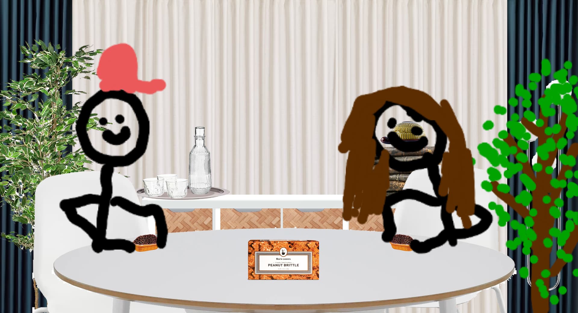 Jan och Caroline äter glass för dom är så lyckliga över rådande symmetri, Jan har till och med på sig en röd trucker keps för han är så glad.