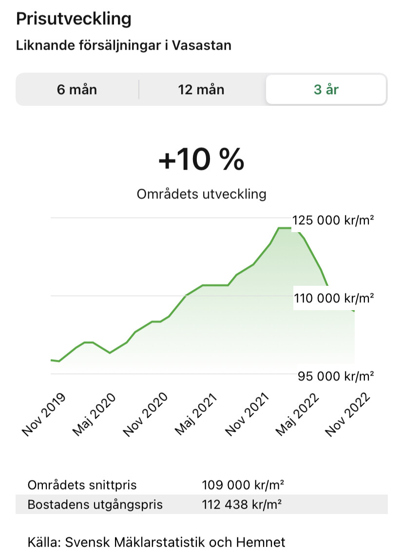 Om du skulle uppskatta, hur hade utgångspris et legat för respektive objekt för ca 1 år sedan?