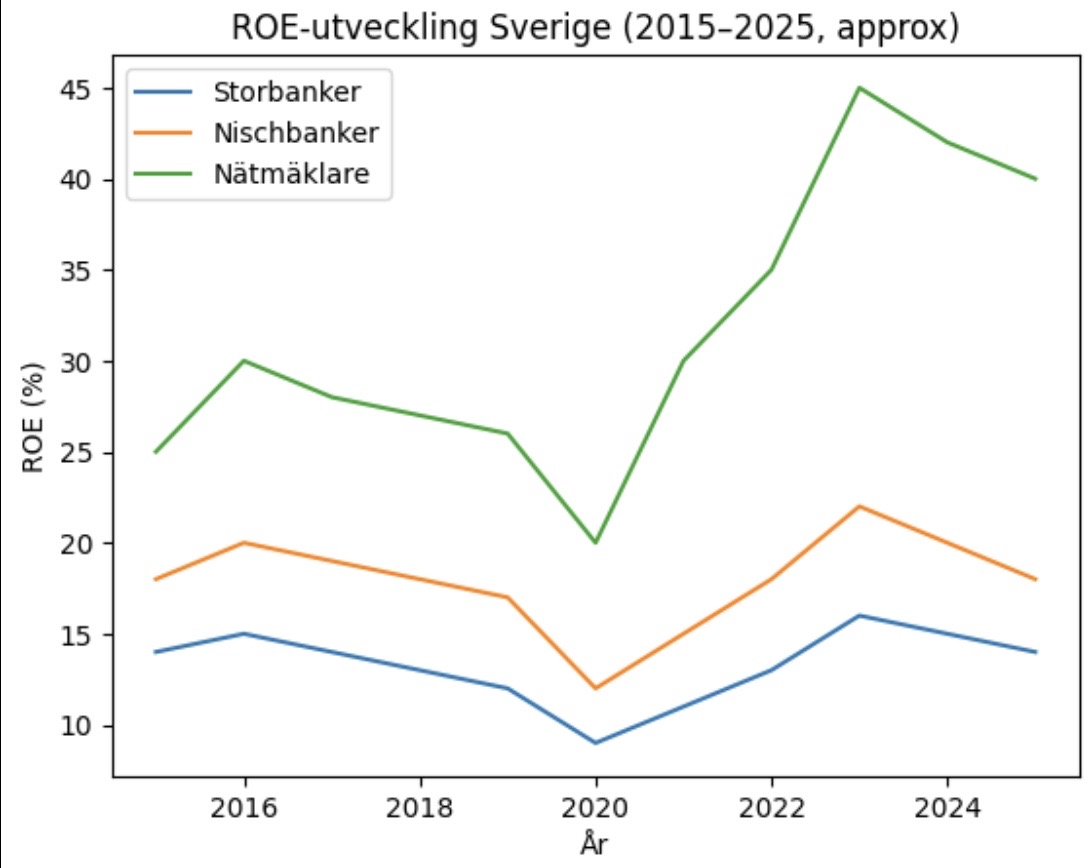 Bilden nedan bekräftar väl detta. ’Småbankerna’ har en enorm lönsamhet och sopar banan med gammelbankerna som historiskt har en rätt medioker lönsamhet även jämfört med industribolagen i Sverige.